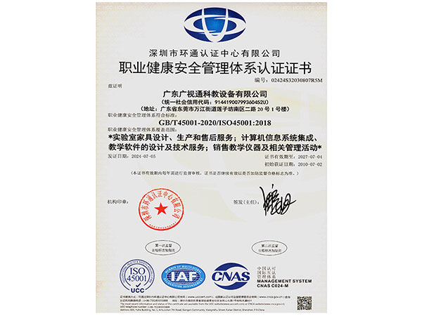 职业健康安全管理体系认证证书