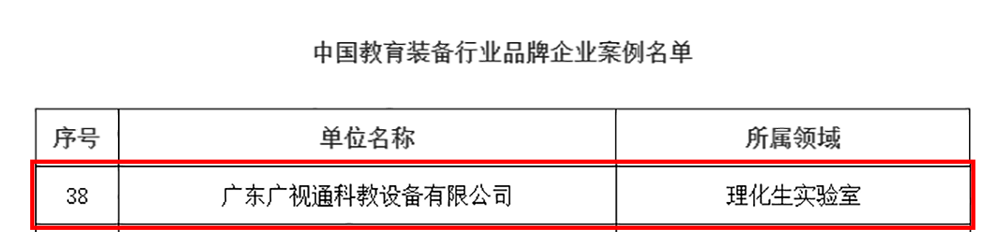 近日,中国教育装备行业协会重磅公示了“中国教育装备行业品牌企业案例名单”与“中国教育装备行业品牌产品案例名单”。广东广视通科教设备有限公司凭借在理化生实验室领域的深厚积淀与创新实力,成功入选品牌企业案例;旗下核心产品——中学AI教考实验室升降式智能终端(学生智慧实验桌)同步斩获品牌产品案例殊荣,实现企业与产品双维度权威认证。