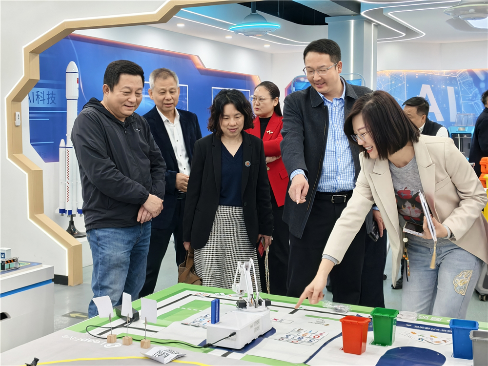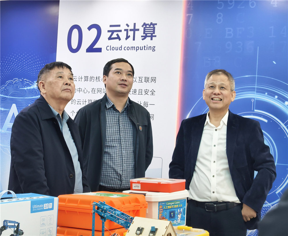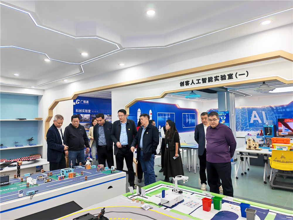 座谈会结束后,在陈登贵董事长的陪同下,协会领导一行走进了广视通教育装备数字化展厅,近距离观摩广视通的核心产品与解决方案,对公司深耕教育装备领域的成果表示肯定,并对产品的创新性、实用性以及在推动教育数字化发展中的积极作用给予高度评价。