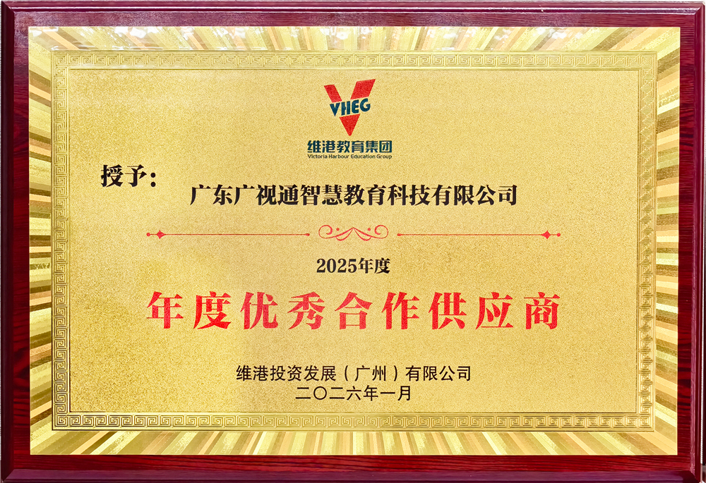 荣誉加身,既是激励,更是沉甸甸的责任。未来,广视通将以此为契机,持续深耕智慧教育装备领域,聚焦技术创新与质量管理提升,不断优化供应链管理,完善客户服务体系,打造更优质的教育装备综合解决方案与产品。我们将与维港教育集团等合作伙伴携手同行,以专业赋能教育发展,以诚信共筑合作蓝图,携手奔赴共赢未来。
