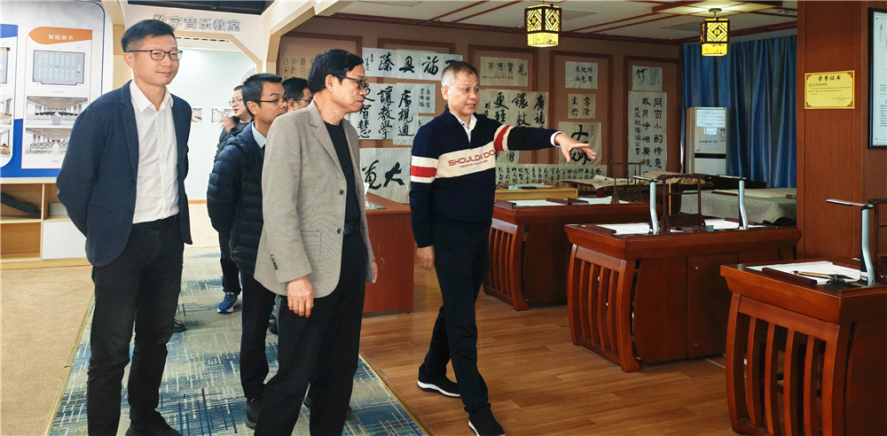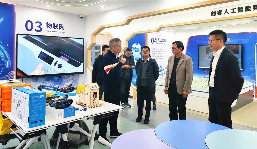座谈会后,在陈登贵董事长的陪同下,曾胜学会长一行先后参观了创新智慧实验室、中学AI教考实验室、人工智能创客实验室、智慧书法教室等教育装备数字化展厅,近距离、沉浸式体验了各应用场景下数字化教育装备的创新应用与实践成果,对广视通先进的经营理念、完善的产品体系以及在教育装备领域的创新实力给予高度肯定。